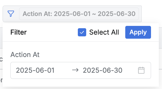 a. Action At : Action occurrence date and time range