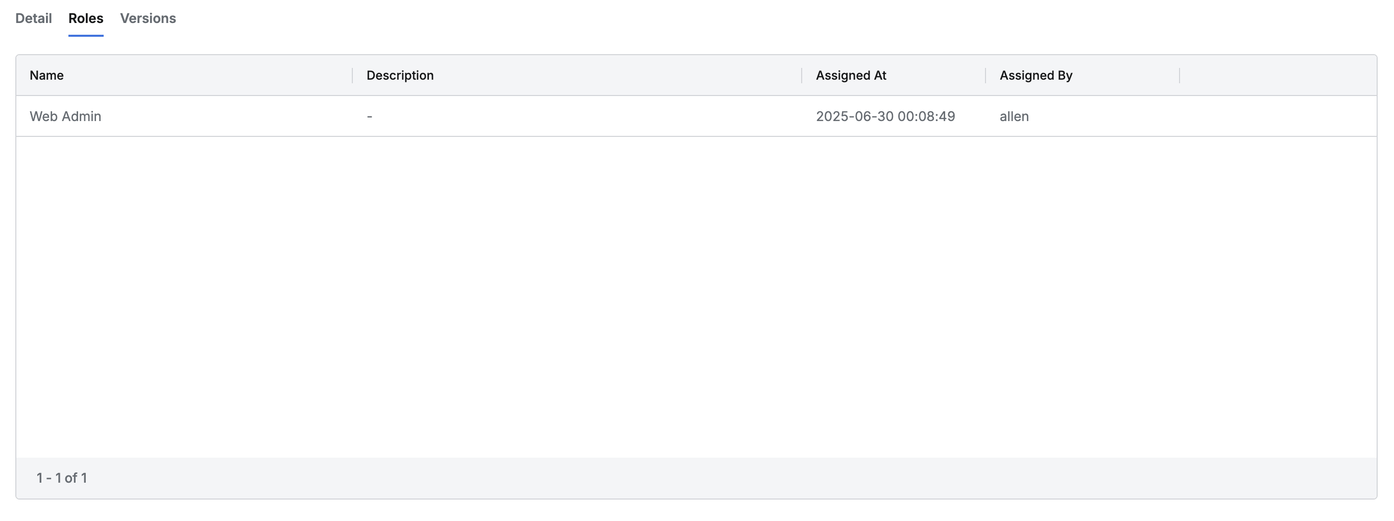 - Clicking each row provides detailed information about the Role in drawer format.