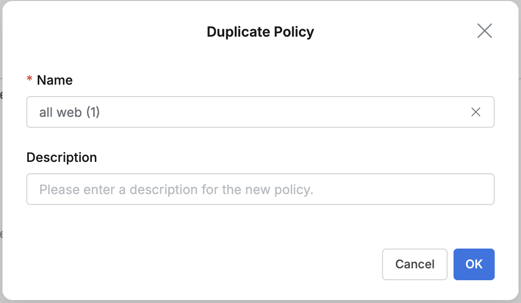 - Click the newly duplicated policy at the top of the policy list to view/modify.