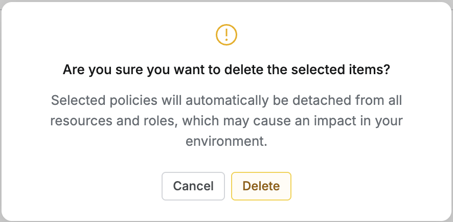 When deleting a Policy, it is automatically separated from web application resources and roles where that policy was assigned.