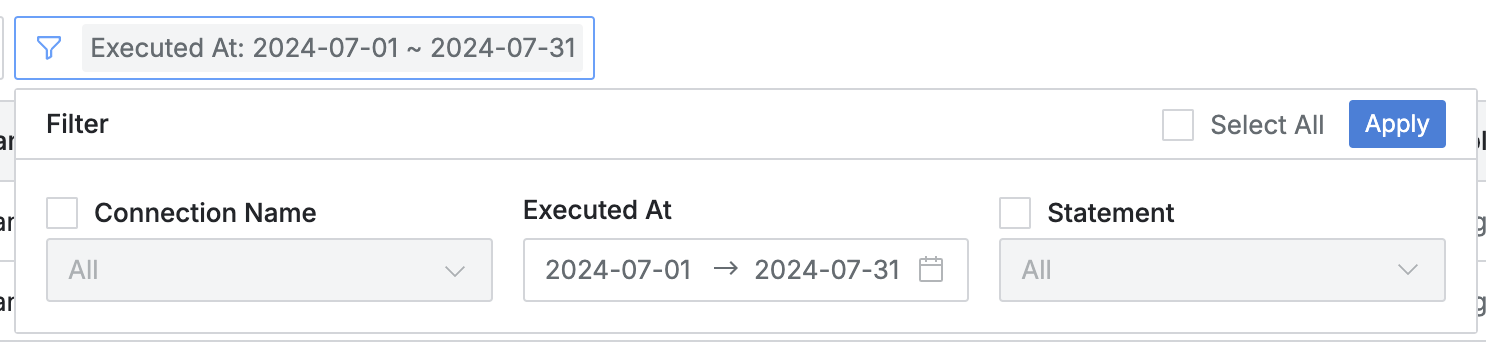 - クエリ実行当月基準でログが降順で照会されます。