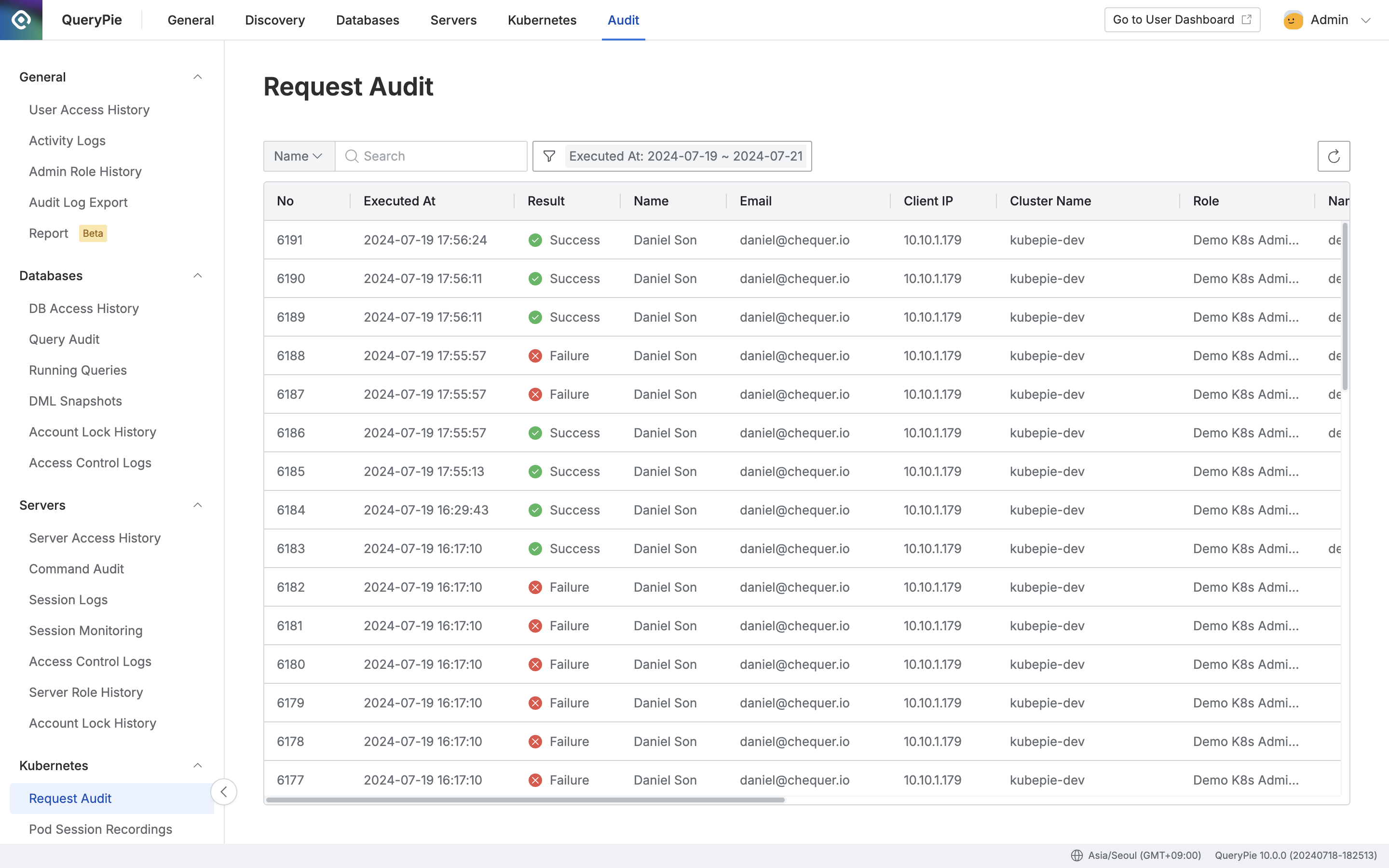 - Administrator > Audit > Kubernetes > Request Auditメニューに移動します。