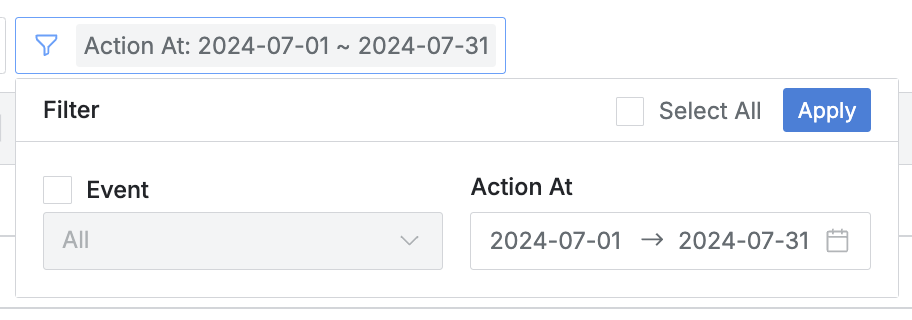 - Action At : 権限付与/回収日時範囲
