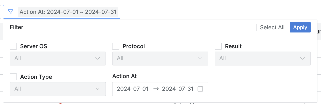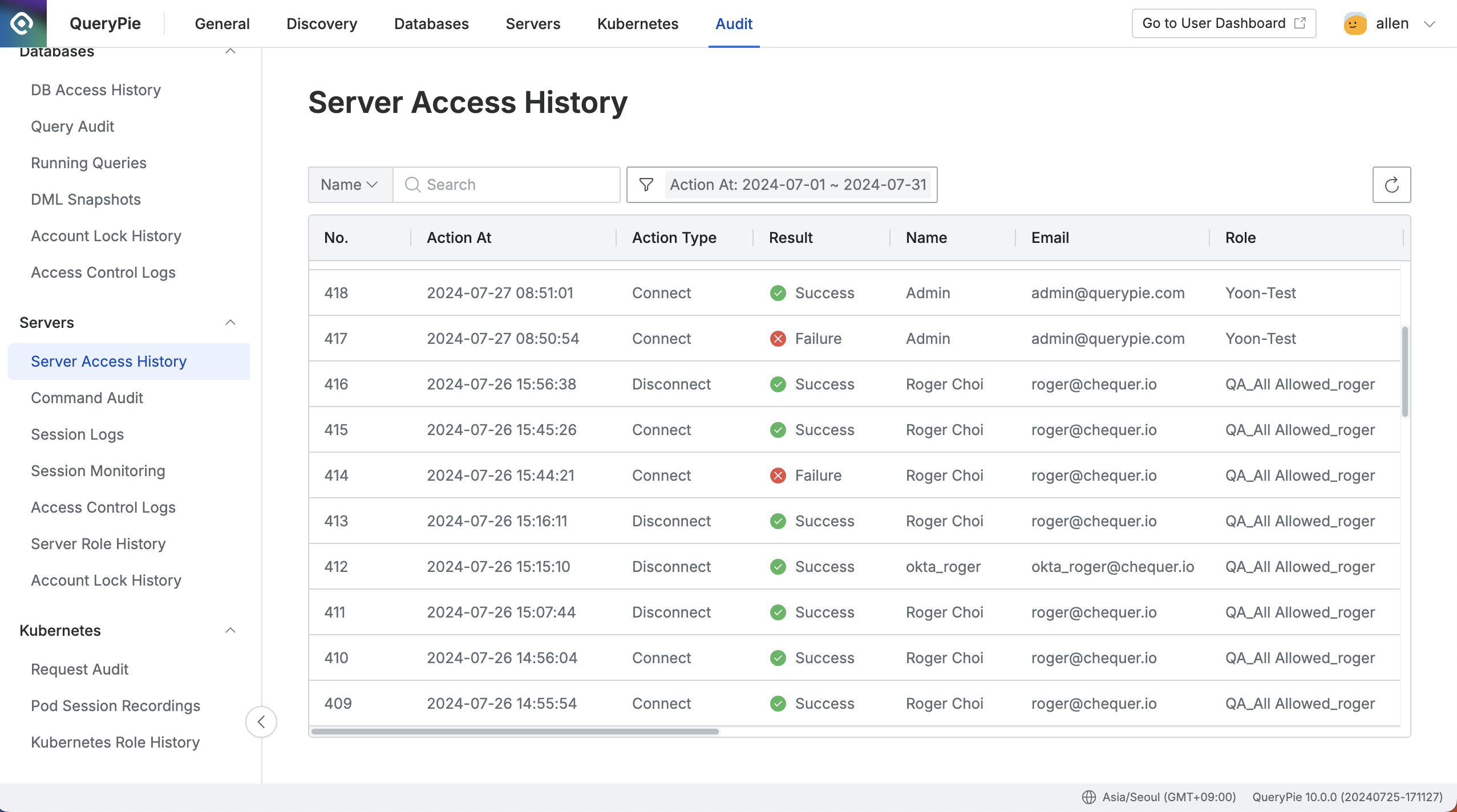 - Administrator > Audit > Servers > Server Access Historyメニューに移動します。
