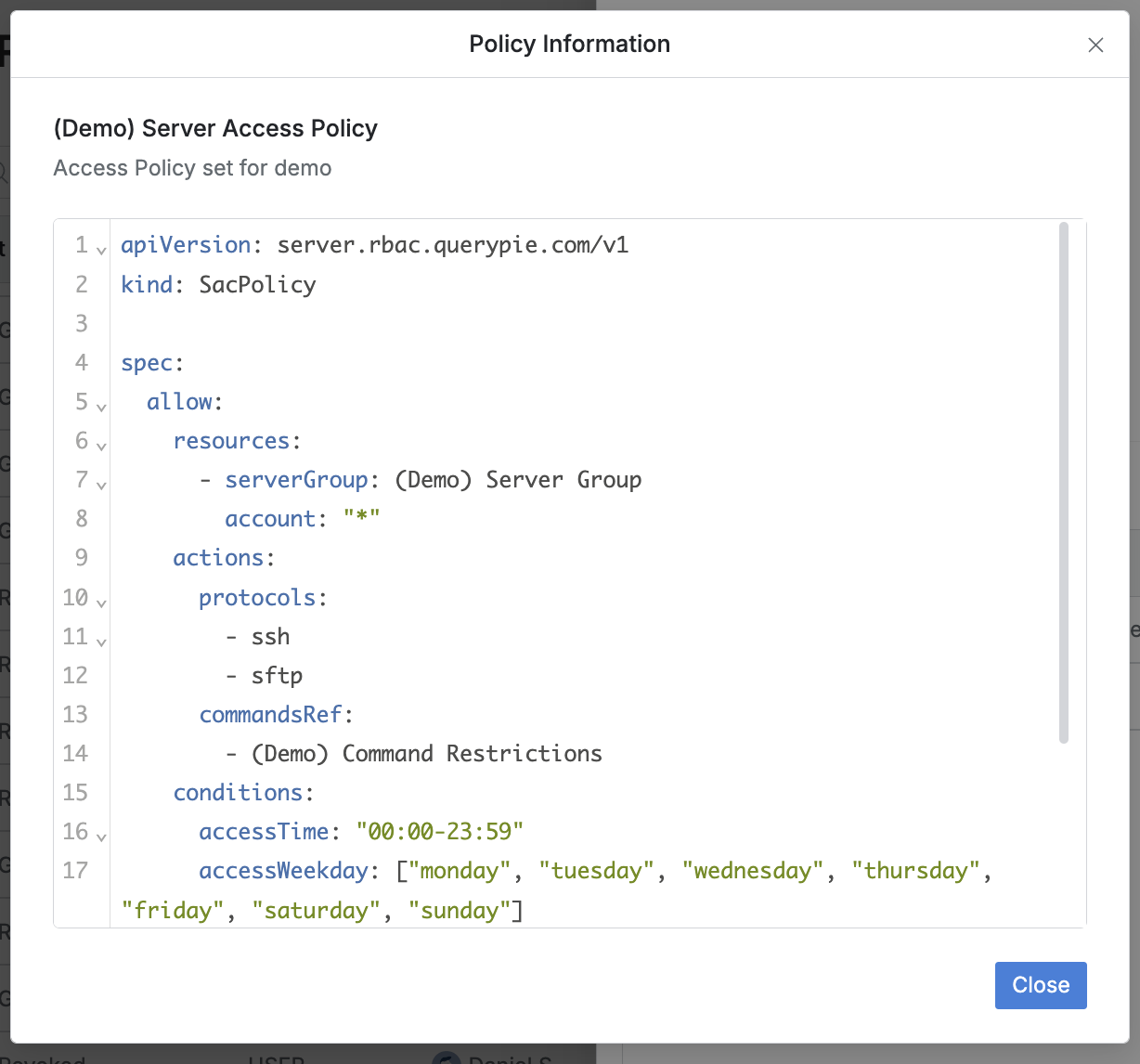 - 政策名、PolicyのDescriptionと共にコードを見せます。