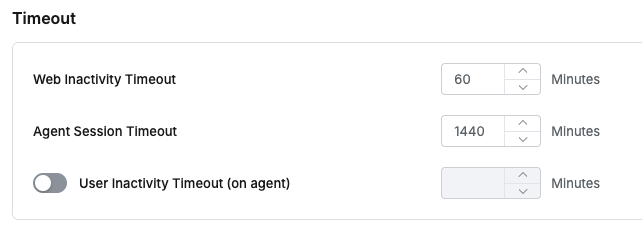 ウェブコンソールとエージェントのタイムアウトポリシーを設定できます。