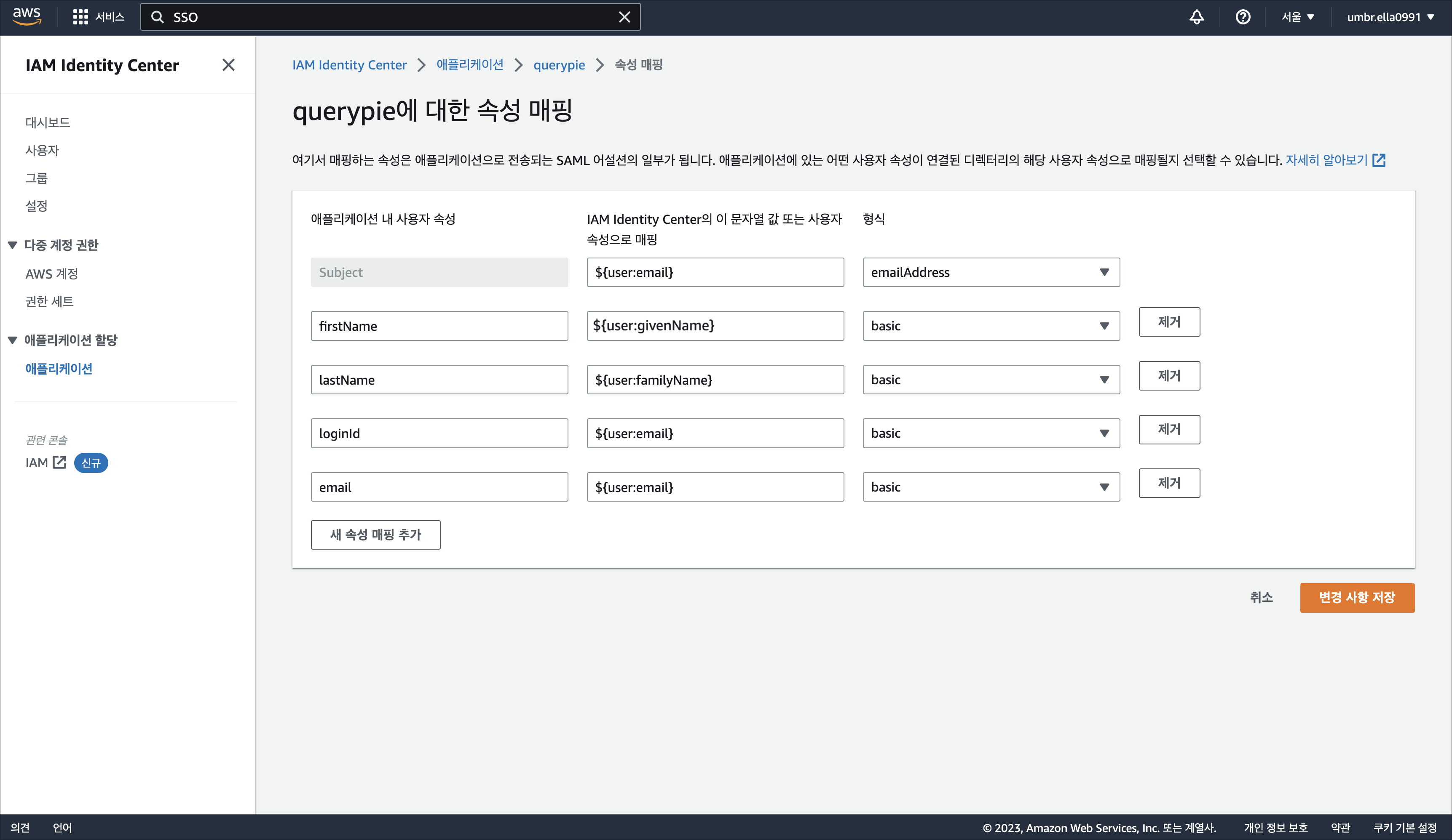 | アプリケーション内ユーザー属性 | IAM Identity Centerの文字列値またはユーザー属性でマッピング | 形式 |