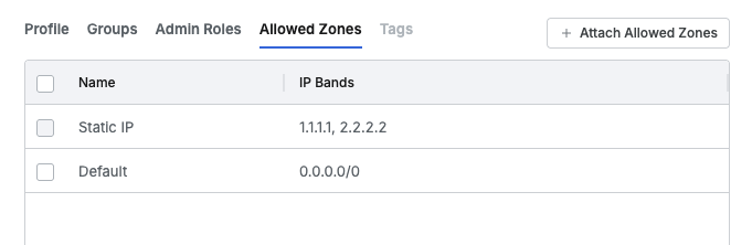 このようにStatic IP属性に登録されたアドレスはこのAllowed ZoneタブにNameがStatic IPである項目として自動反映され、ユーザーは該当IPからのアクセス権限を付与受けることになります。