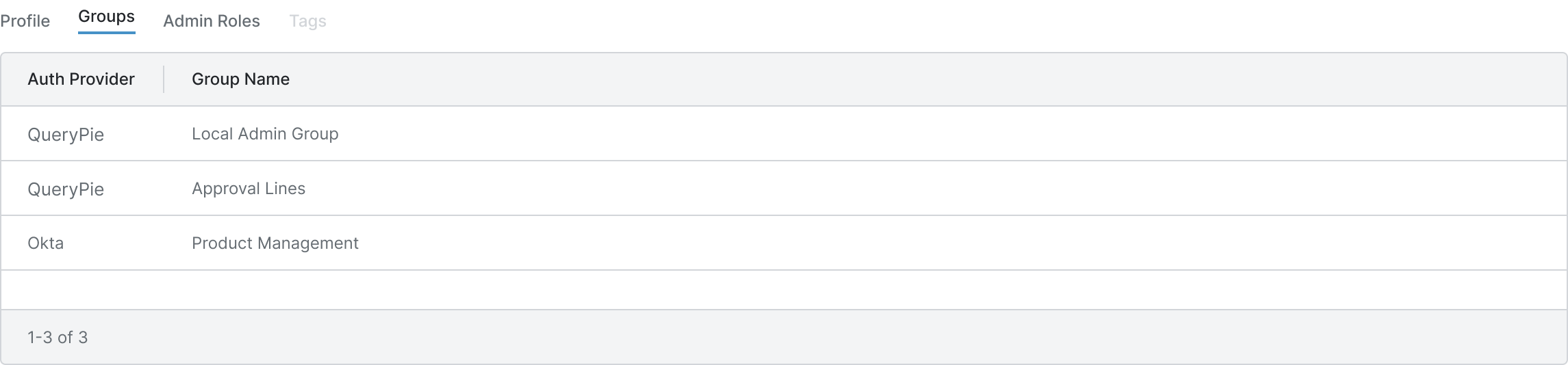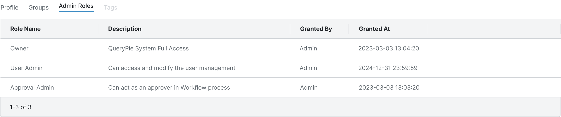 ユーザーに割り当てられたQueryPie管理者権限リストを照会できるタブです。