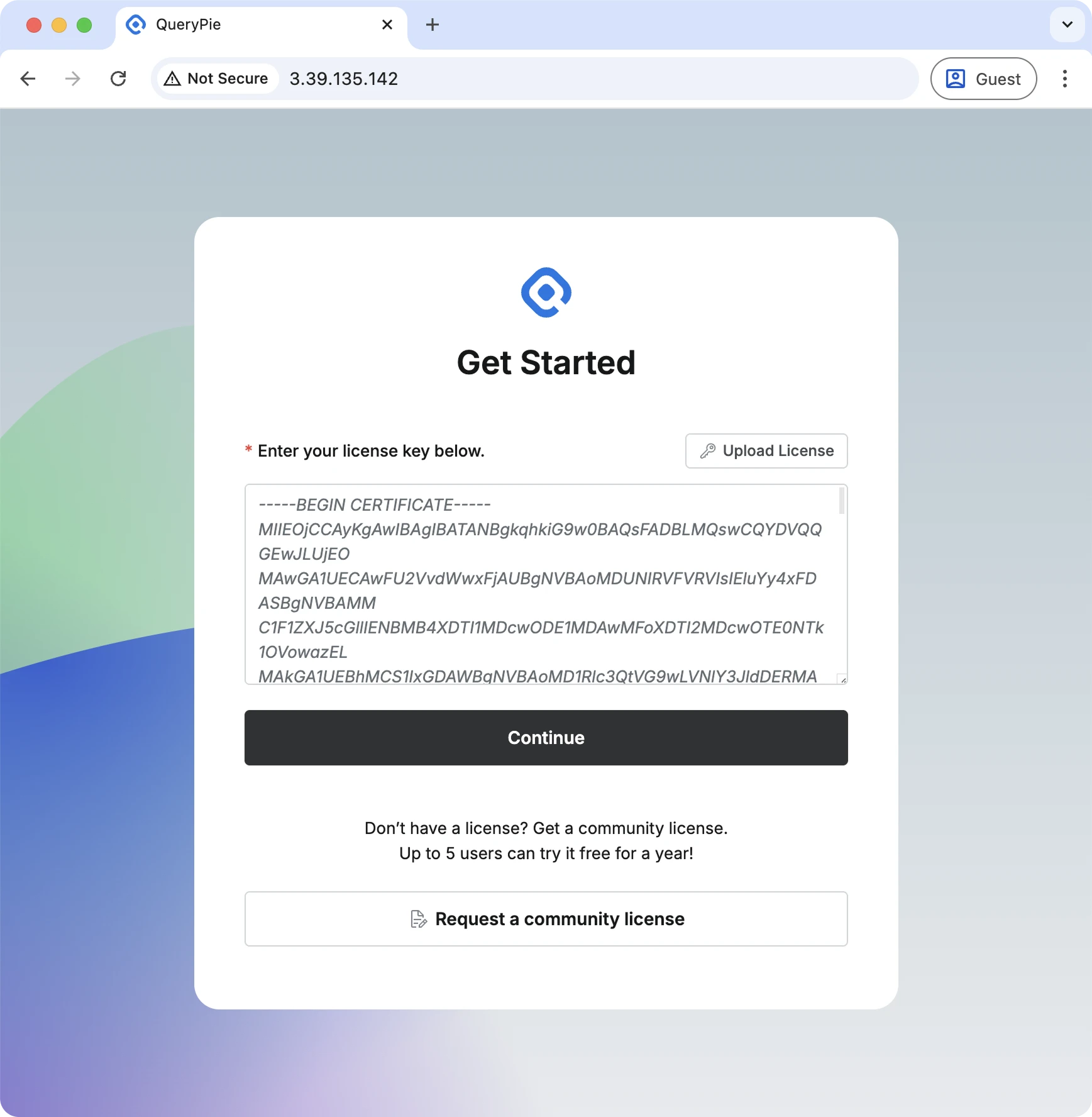 現在使用中のQueryPieにライセンスを延長したい場合があります。 例えば、PoC進行中だったQueryPie Server InstanceにProduction Licenseをインストールして、既存PoC Licenseを延長したい場合を想定します。