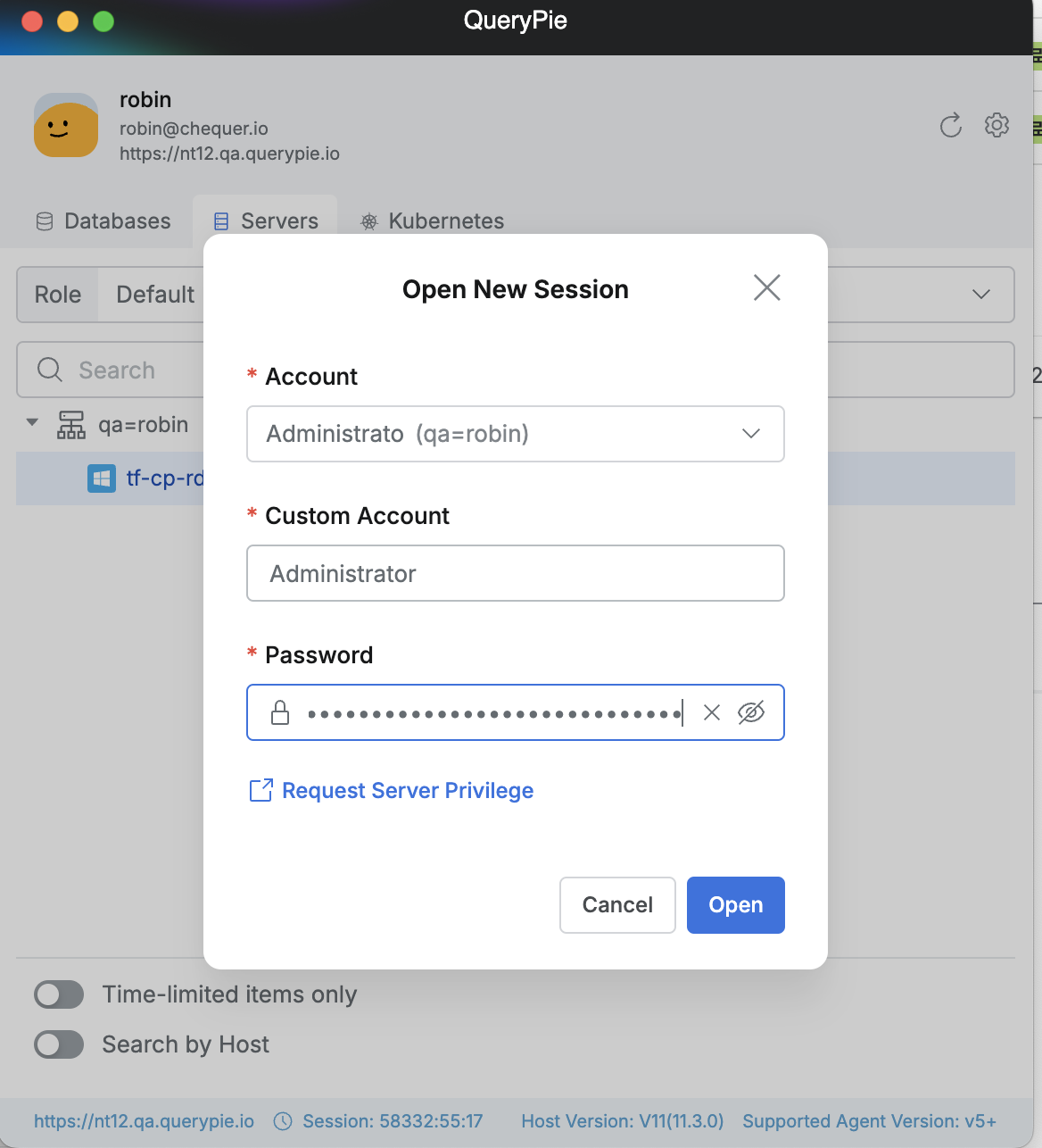 QueryPie Web > System Access Control > Servers > Select a Role