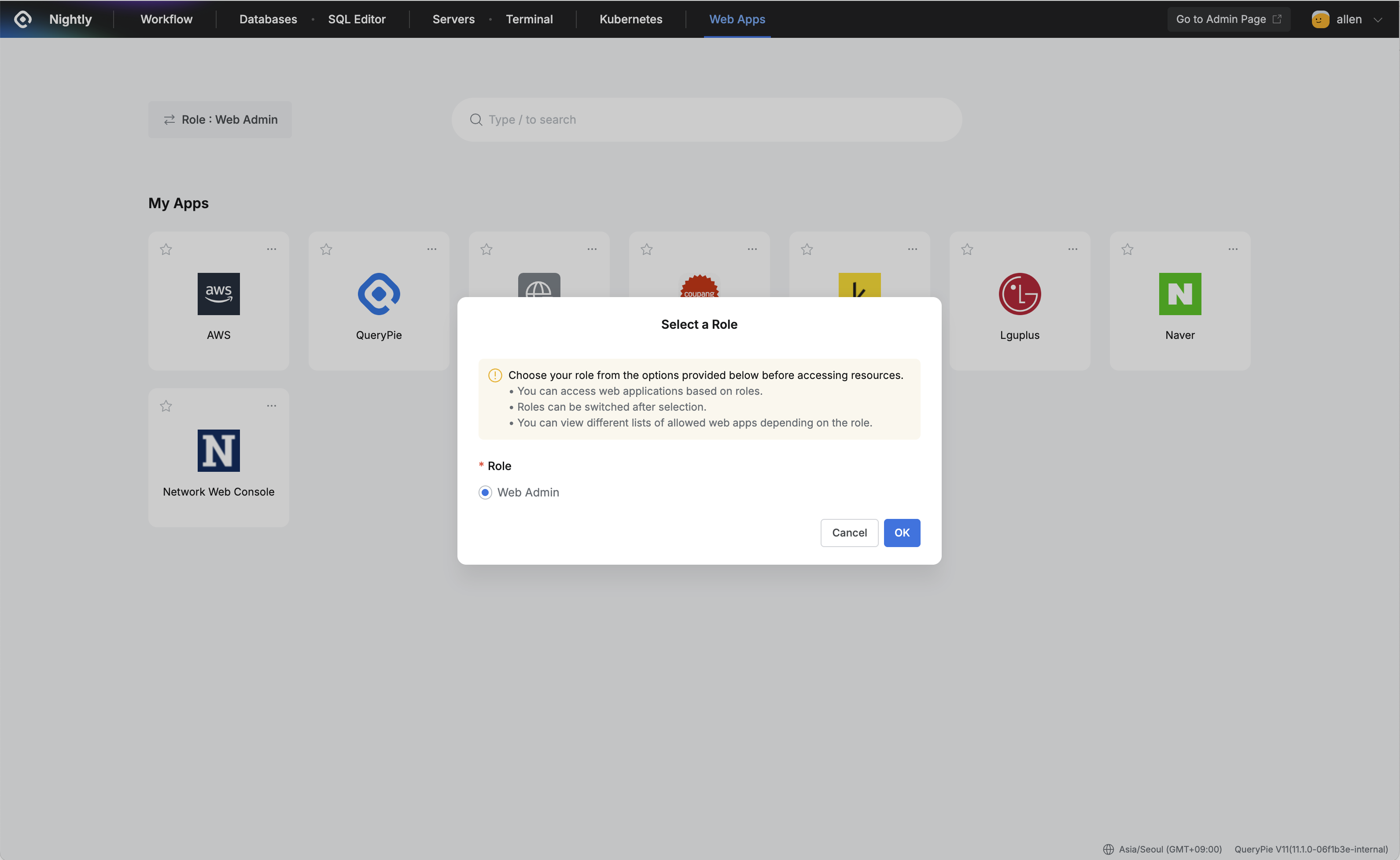 QueryPie Web > Web Access Control > Web Apps > Select a Role