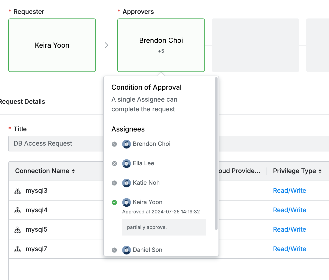 この際、既に削除されたデータ(決裁規則、承認者、サーバー、アカウントなど)は Deleted で表示されることを確認でき、削除された値は再上申時に除外され、修正された値は現在基準で読み込まれます。