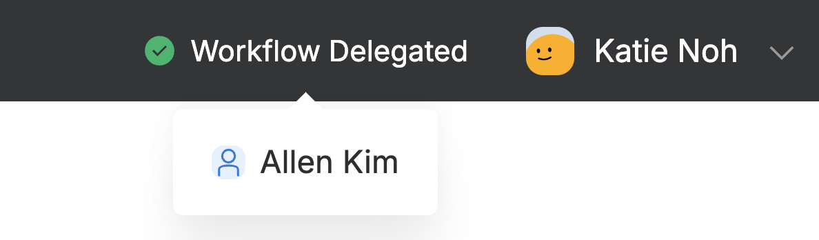 代理決裁設定期間には元決裁者と代理決裁者のアクセス時に上部メニューバーに以下のように表示されます。