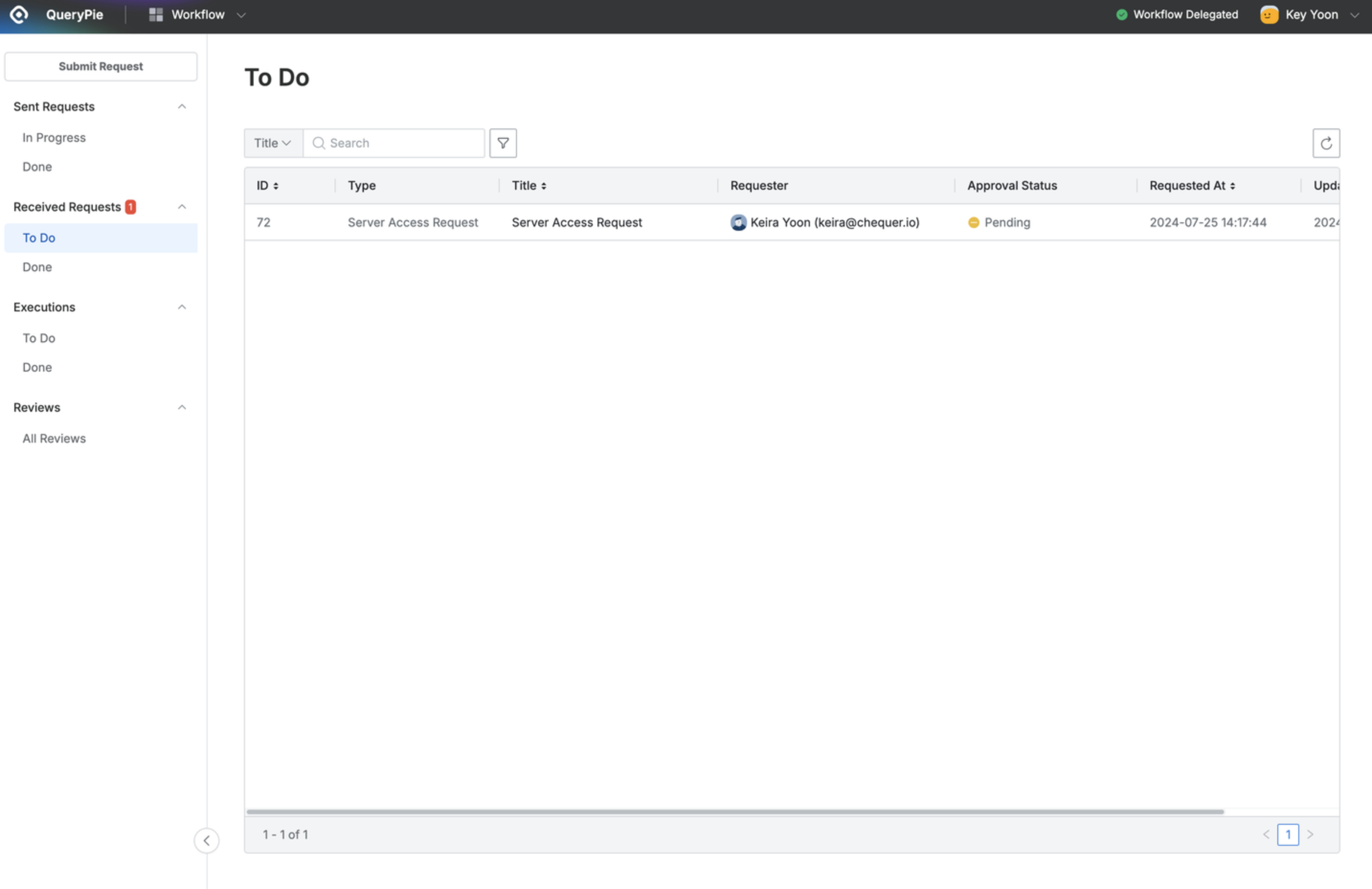 Workflow > Sent Requests > Done > List Details